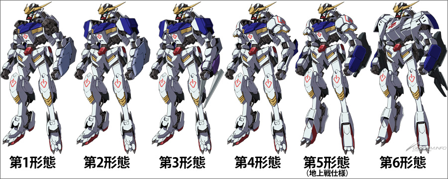 高達巴巴托司由於其泛用性,在動畫中經過各種兵器換裝,或是利用敵機零件強化隨時進行修改。第1季從首次登場時的第1型態姿態最後變為第6型態,第2季在歳星工廠經過分解修理及調整,成為高達巴巴托司狼式。