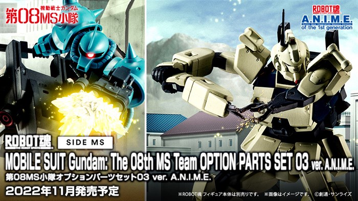 最尖端的“CAD技術”和造形職人的“工匠技藝”所交織成的機器人公仔「ROBOT魂 ver. A.N.I.M.E.」,決定於11月發售「第08MS小隊配件組合包03」。價格5,500日圓(含稅)。
