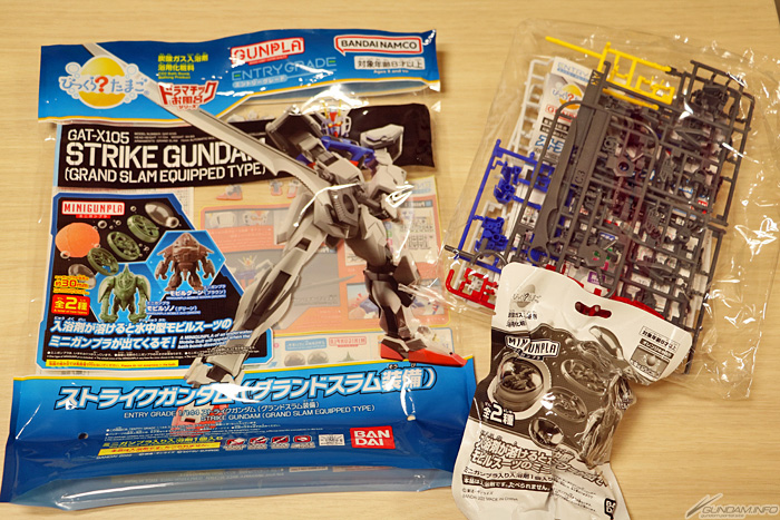 紀念「驚奇泡澡球」20週年而登場的本商品將「ENTRY GRADE 突擊高達」和「內含mini高達模型的泡澡劑」成套推出,泡澡劑溶解後,就可以取出內封的MINI高達模型。