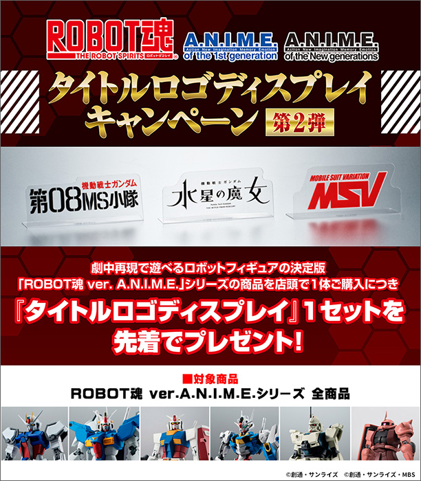 本活動中以「ROBOT魂 ver.A.N.I.M.E.系列」全商品為對象,只要於門市購買1件商品,即可獲得1個數量有限的「標題展示牌」,活動將分2次實施。