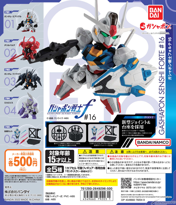 轉蛋商品「機動戰士高達 轉蛋戰士 FORTE 16」將於12月第5週起發售。售價為1次500日圓(含稅)。