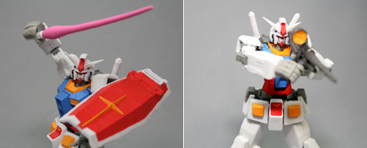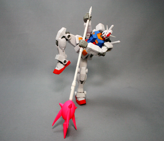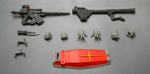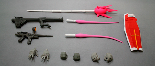高達除了盾牌、光束步槍、大型火箭砲、光束長矛、光束軍刀等豐富武裝之外還附有替換用的手部零件。