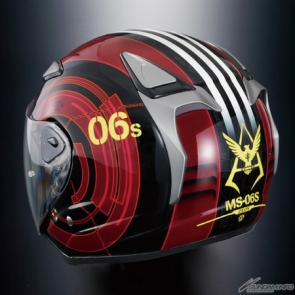 安全帽以MS「馬沙專用渣古」為主題,採用充滿躍動感的設計,另外還有機體型號MS-06S和吉翁軍標誌等細微表現。用色十分講究,樣式也十分符合主題。