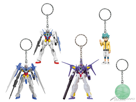 『機動戰士高達AGE』各篇中的主角機「高達AGE-1 普通型」、「高達AGE-2 普通型」、「高達AGE-3 普通型」,以及菲利特篇主角「菲利特・明日野」和「哈囉」,共5種鑰匙圈登場!