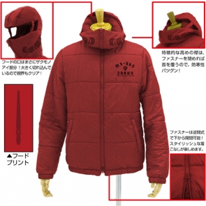除了正面和背面都印有型式編號外,還加入了逆開式拉鏈及獨特連帽形狀等別具一格的細節設計,成為具有「戴上帽子就可以成為薩克的單眼樣式」驚人機構的外套。