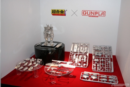 ▲「超合金」×「鋼彈模型」的合作企劃商品展示!鋼彈模型的產品用超合金成型喔!