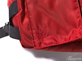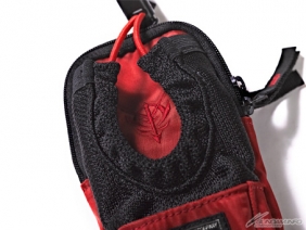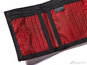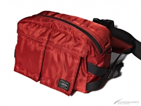 吉田包當中的最暢銷商品:腰包。大小適中的尺寸加上讓人意外的強大收納功能為其魅力所在,除了一般能作為腰包之外,還可以斜背當成側背包使用。加上與包包一樣是酒紅色,毫不做作地妝點吉翁公國軍紋章是本包的特色。