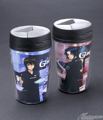 共販售有2款插畫圖案以「煌・大和」與「阿斯蘭・薩拉」為設計的隨行杯,這張描繪他們穿著GUNDAM CAFÉ工作制服在餐廳內工作情形的插畫,是由『機動戰士高達SEED』作畫導演米山浩平老師所親筆繪製的完全原創插圖。