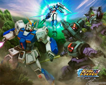 「GUNDAM TRY AGE」為使用跨越作品隔閡集結的MS與駕駛員卡片進行戰鬥的電子卡片遊戲。