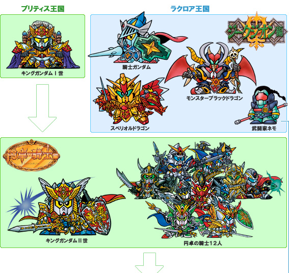 「騎士高達系列」新歴史就此開幕,對於往年的愛好者來說雖然是令人期待的新故事,但是為了對於這系列的故事並不清楚的朋友進行說明「普利迪斯王國?」「圓桌的騎士?」這些名詞,就從 舊系列開始的系譜進行簡單的介紹吧。