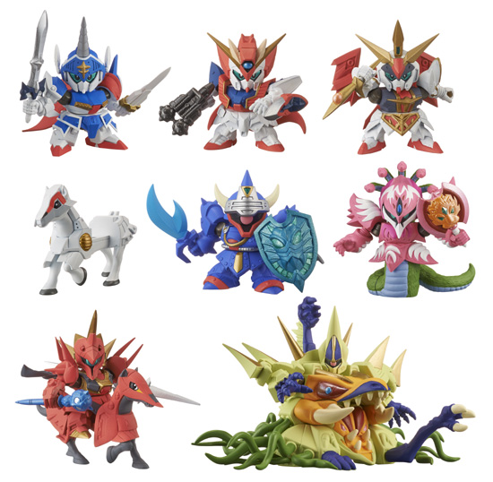 騎士高達系列「阿爾卡斯騎士團」3人與敵方「吉翁三魔團」,再加上阿爾卡斯騎士團篇的最終頭目「魔物THE O但丁」是普通轉蛋辦不到的65mm大尺寸,全都收錄其中!全部9款商品都是全新造型!