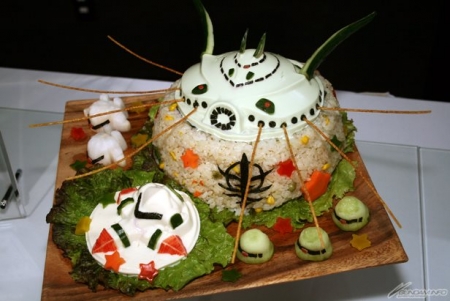 場景食譜也有使用了目前為止推出的「渣古豆腐」、「魔蟹豆腐」,其完成度之高,點子的有趣受到許多人歡迎、並停下腳步來欣賞。