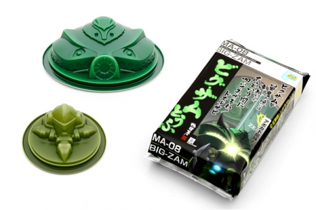 「畢格・薩姆豆腐」是用吉翁公國軍的試作MA「畢格・薩姆」的身體部分和腳部的樣子來製作容器,裡面裝有「酪梨口味」和「原味」等2種豆腐,還在專用盒內附使用說明書跟塑型碗,是業界首次的「組裝豆腐」。