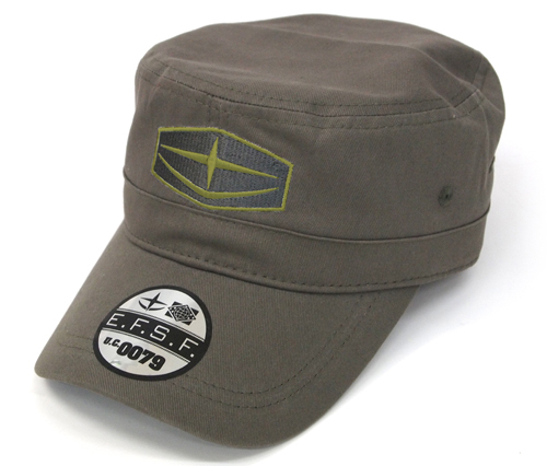 「地球聯邦軍工作帽」,在中央刺上了地球聯邦軍的標誌,雖是基本款卻充滿了軍武風的設計。帽舌上貼有地球聯邦官製造型的布貼紙,即使在時尚商品中也是相當講究的極品。