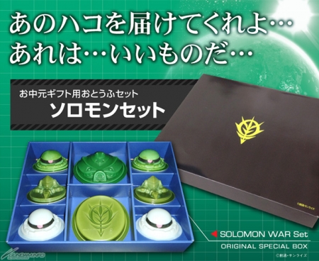 蔚為話題、內含「渣古豆腐」和「畢格・薩姆豆腐」的中元禮盒「所羅門禮盒」,現正於線上購物網站「樂天」以及「Amazon」的「相模屋豆腐Shop」熱賣中。價格為1,500日圓(含稅・運費另計)。
