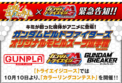 另外,本機台和預定10月7日(一)開始播出的TV版作品最新作『GUNDAM BUILD FIGHTERS』的合作企劃「GUNDAM BUILD FIGHTERS 原創MS錦標賽」之一,「GUNDAM TRYAGE」將於10月10日(四)開始舉辦「配色大賽」,優秀作品將會在動畫中登場喔!