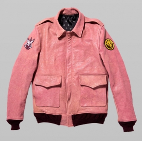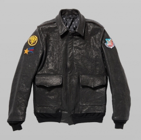 第二次世界大戰中美軍飛行員所穿著的軍用A-2飛行夾克。本體材質採用植物性鞣皮加工,兼具柔軟和堅韌度、耐久性的山羊皮。內面也很講究的繡上了原創商標。