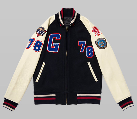 使用份量十足的刺繡,在胸前刺上「G」和「78」字母紋章,袖子上則設計了「天馬」、「地球聯邦軍」紋章。衣服前後襟使用海軍麥爾登呢、袖子使用採收縮加工的牛皮革。羅紋(袖口等處的伸縮部分)的形狀也講究地採用舊型樣式,是款即便非高達迷也會滿意的正統運動外套。