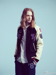 78,000日圓(含稅) 胸部繡有「G」和「78」的字樣,袖子上則繡有「飛馬」、「聯邦軍」的徽章。本體是海軍絨、袖子採用了收縮處理過的牛皮。袖口的部分也很講究,使古典懷舊樣式。 |