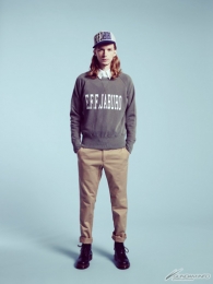 15,750日圓(含稅) 在前胸以短毛機織加工的方式繡上「E.F.F.JABURO」字樣的保暖運動衫,染色後經過生化水洗加工,表現出復古風格。 |
