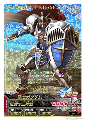 系列首張的SECRET卡「B3-074 騎高達」,是一張有著「變身」技能,必殺技是「傳說的三神器」的特別卡片。