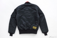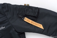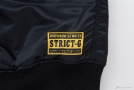 「ALPHA INDUSTRIES」×「STRICT-G」特別聯名商品第2彈是以「MS-09 大魔」為主題的黑色三連星款。胸前的三顆星以填充物來做立體表現,「BLACK TRI STAR」的刺繡使用不會太突兀的同色系來做設計。