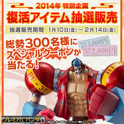 BANDAI官方網路商店「PRIEMUM BANDAI」,在本日1月10日(五)開始舉辦2014年特別企畫「復活商品抽選販售」。