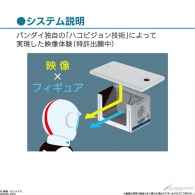 ▲開封的包裝有一組公仔和透明板。將包裝上所印刷的二維條碼讓智慧型手機讀取後播放專用影像,並向下面對公仔的方向設置後,就可以體驗到各種模擬的立體影像。