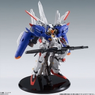 「FW GUNDAM STANDart:」系列根本所在的MS『站姿』當然是不用說的,還可以使用專用底座擺出橫握「光束精靈步槍」的姿勢,以及換裝零件浮在周圍空間的情境,可以有三種不同的展示方式。