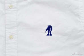 「扣領襯衫」除了在胸口有「RX-78-2 高達」剪影的單點刺繍外,袖口也裝飾有地球聯邦軍標誌的原創鈕扣,簡單又不失設計感。