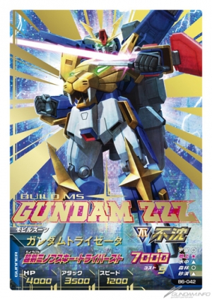 之前在「BUILD MS 第4彈」錦標賽中,作為優勝獎品登場的TRY AGE原創機體「ZZZ高達」,將以完美稀有卡片收錄在本彈中。