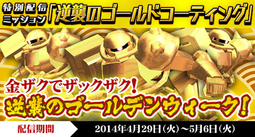 配合黃金週開始的本次任務,會有金色的「渣古」來襲,擊破這些渣古可以獲得大量的MS經驗值。