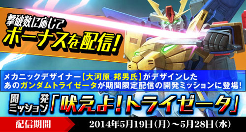 任務中,由機械設計師・大河原邦男所設計的TRY AGE原創MS「ZZZ高達」將會前來攻擊玩家。漂亮地完成任務,就可以開發ZZZ高達這台BUILD MS。