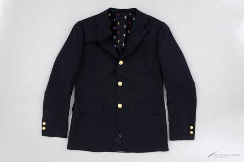 這件有折領的三扣式外套,中間有刻上聯邦軍標誌的金色扣子,不但設計看起來高雅,色彩繽紛的內襯和袖口部分的條紋內襯也是一大特色。輕便羊毛材質穿起來相當舒服,內襯只有在背後的上半才有,因此透氣性佳,在炎炎夏日也可以輕鬆穿上。