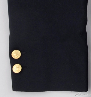 ▲內襯是一整天色彩繽紛的聯邦軍標誌花紋。刻上相同標誌的金鈕扣,在中央有3個,兩隻袖口各有2個。