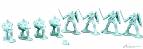 每份商品當中都會有9隻公仔,各收錄了2種不同姿勢的「吉姆」和「渣古」4個,以及「碉堡」和「沙包」等額外零件1個。此外還有機會獲得稀有公仔「高達」、「馬沙専用渣古」。