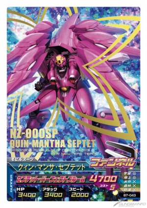 設定上,本機有6具莢倉,全部都由同名的少女們分別駕駛,七重奏模式時以各自獨立的MA型態來作戰,是明貴美加設計的特別機體。請一定要拿到這台機體,親自確認這台機體的性能。