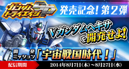 本任務是為了紀念3DS「GUNDAM TRY AGESP」發售的第2彈活動,有出自『機動戰士V高達』的「V高達HEXA」、「佐羅(庫羅諾克專用機)」、「佐羅」3台機體來襲。成功完成任務就可以開發「V高達HEXA」的BUILD MS喔。