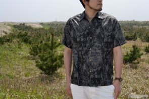 扣子使用了以椰子樹風格加工過的木製鈕扣。領口採用開放色彩的剪影風格,當作日常穿著也相當合用。材質使用日本服飾品牌中主流的人造絲棉,成品觸感好、穿起來也相當舒適。