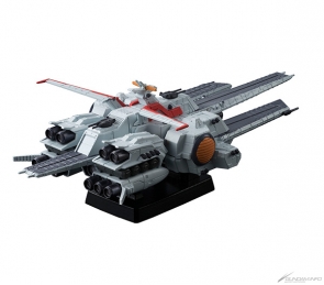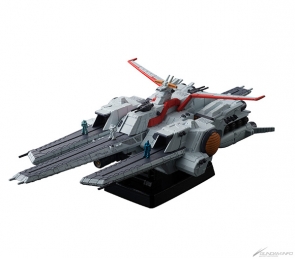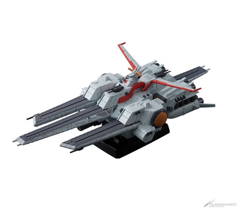 全長約170mm的艦體,追求以直線為主體、銳利又寫實的造型,靠著前後左右的MS彈射甲板展現壓倒性的份量。可以透過交換零件來重現「超級MEGA粒子砲」的發射狀態,以及MS甲板的開放狀態。