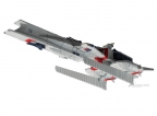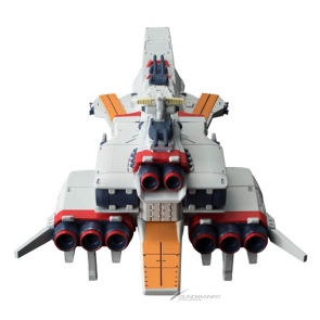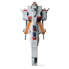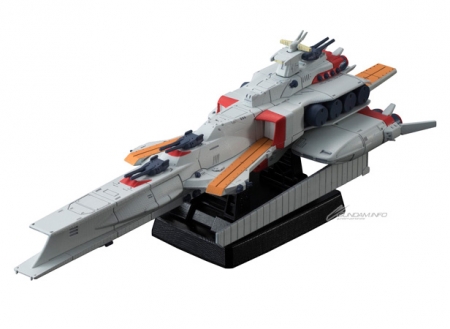 全長約170mm,銳利且寫實的艦體,裝備了4座「2連裝MEGA粒子砲」,各砲塔都有迴旋構造。而左右的MS機庫,可以透過交換零件的方式來重現艙門的開閉狀態。