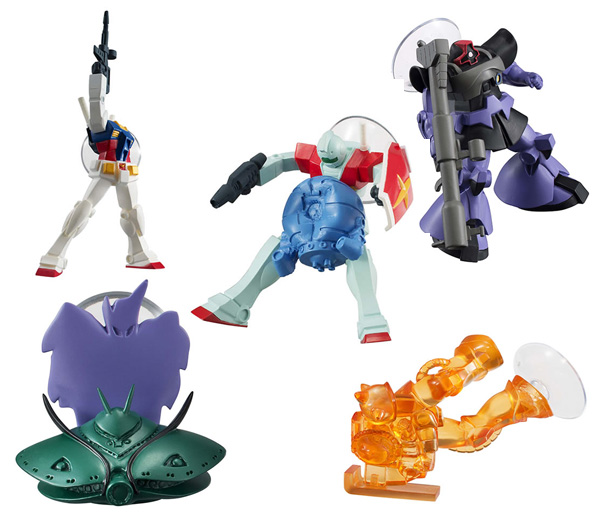 可以拿來當作智慧型手機直立架的附吸盤公仔系列商品「機動戰士高達 MS機動直立架」第3彈,將於9月下旬起在全國玩具賣場等處的轉蛋販賣機發售。價格是轉1次200日圓(含稅)。