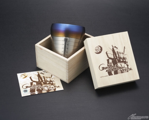 雙層真空構造使得容器中的溫度不易變化,可以長時間的保持飲料的冷熱。而包裝用的桐木盒上有「機動戰士高達35周年」的標誌,是搭配大河原邦男插圖的特別樣式。
