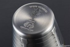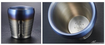比先前以不鏽鋼製作的推進器隨行杯更加進化的本商品,是採用了更輕耐鏽度也更佳,所有金屬中對人體最無害的「TP270鈦合金」。而杯口那種金屬高溫加熱後的顏色,則是透過氧化方式來進行的發色加工,鮮豔的配色醞釀出推進器的感覺來。