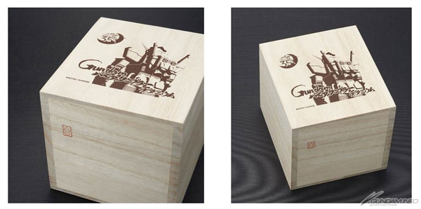▲收納隨行杯的桐木盒上,有跟這項最高品質商品相匹配的原創插圖,這是由經手過高達系列作眾多機械設計的大河原邦男所繪。。