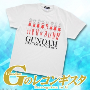 好評播送中的TV版動畫『高達 RECONGUISTA IN G』,推出了許多新圖樣的T恤。除了印有聖花學園啦啦隊少女們的「啦啦隊少女圖樣」外,還有「G-自我圖樣」、「G-奧秘圖樣」、「貝利圖案」、「阿依達圖樣」等等,商品非常豐富。