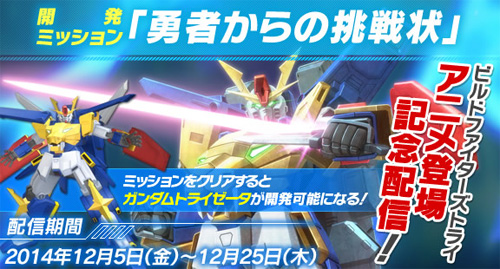 本次任務是為了紀念「GUNDAM TRY AGE」原創BUILD MS「ZZZ高達」在好評播送中的TV版動畫『高達創戰者TRY』中登場而推出。成功過關就可以開發「ZZZ高達」。