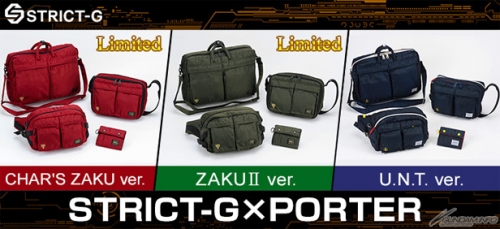 先前由「STRICT- G」和「PORTER」推出的聯名款式,有「馬沙專用渣古ver.」、「渣古IIver.」、「連邦軍ver.」等等,這次則推出了人氣商品的改款限定版。而新推出的款式則是「馬沙專用渣古ver.」和 「渣古IIver.」的肩背包,以及「連邦軍ver.」的3WAY公事包。