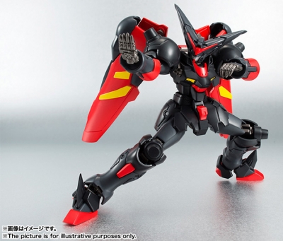 「ROBOT魂 天王高達」是和「神威高達」成對的機體,是款有著極限可動性的立體商品。透過新機軸所帶來的可動性和多種手部零件,可重現許多的動感姿勢。另外還內附了必殺暗黑掌等多種手部零件,能夠擺出取多姿勢來。