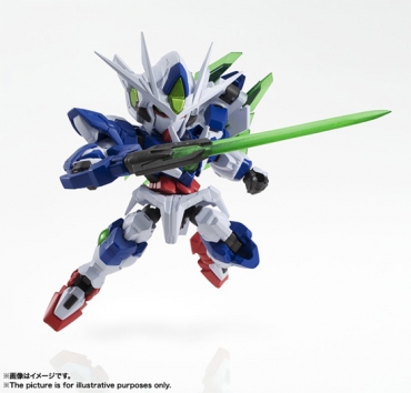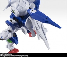 既使比例縮小仍在全身加入了許多細節之外,也在胸部的GN爐和GN劍BIT等各部位首用了透明零件。「GN劍BIT」除了附屬専用的支柱外,也可以替換「GN劍V」的尖端再現「GN破壞巨劍」。此外,和預定於11月發售的「NXEDGE STYLE 迷網高達紅色機」相同,附屬了泛用斬撃特效零件,可以透過替換合提高系列的可玩性。